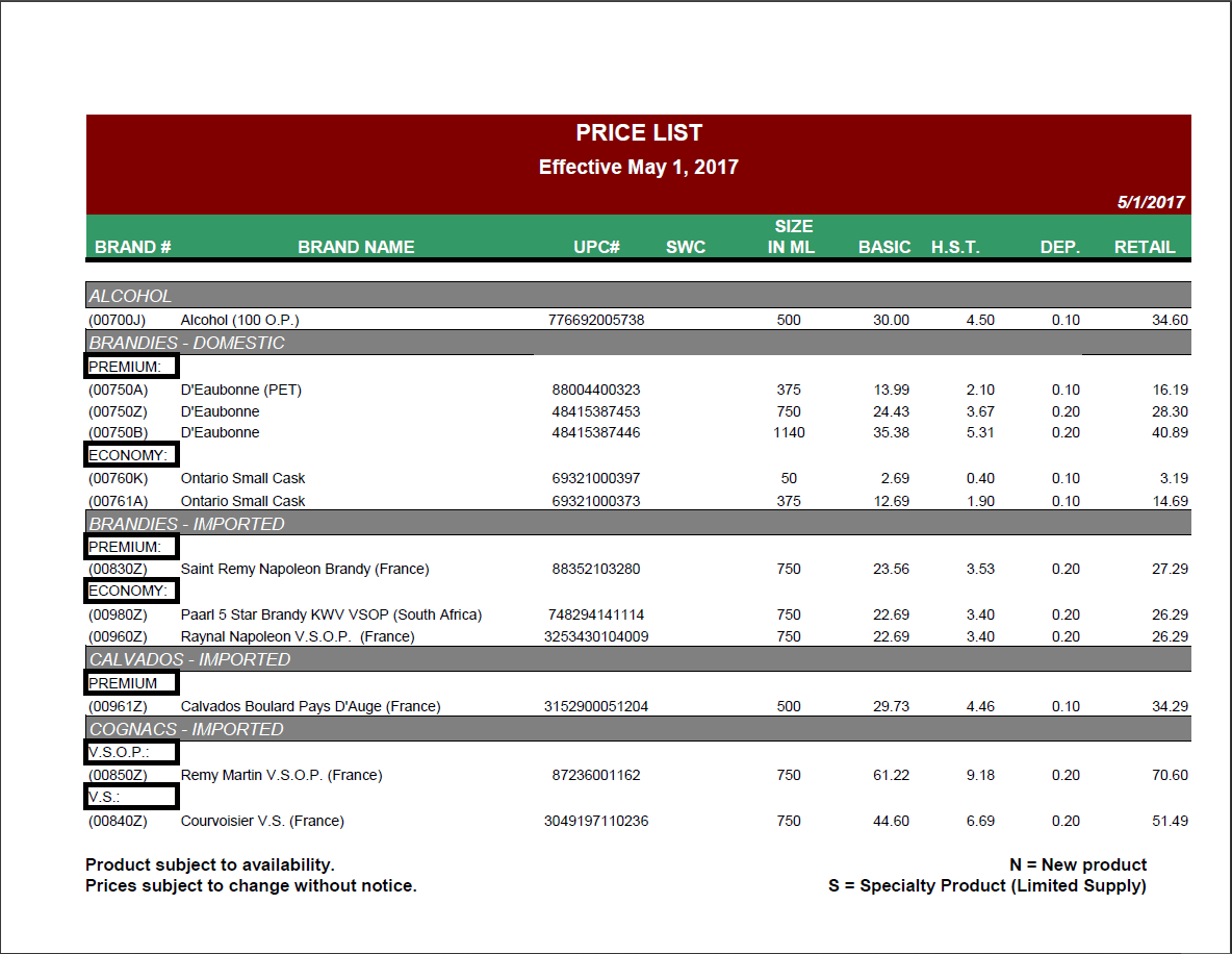 Liquor Price Lists A Selection ... | 1184x916 px