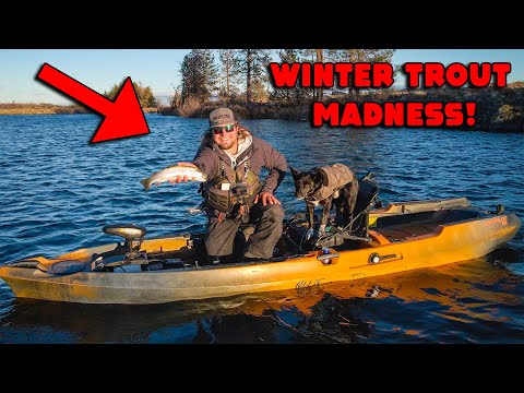 WINTER Kayak Fishing For TROUT! My BATTERY DIED!! - Winter Died